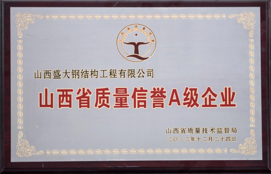 山西省質(zhì)量信譽(yù)A級企業(yè)