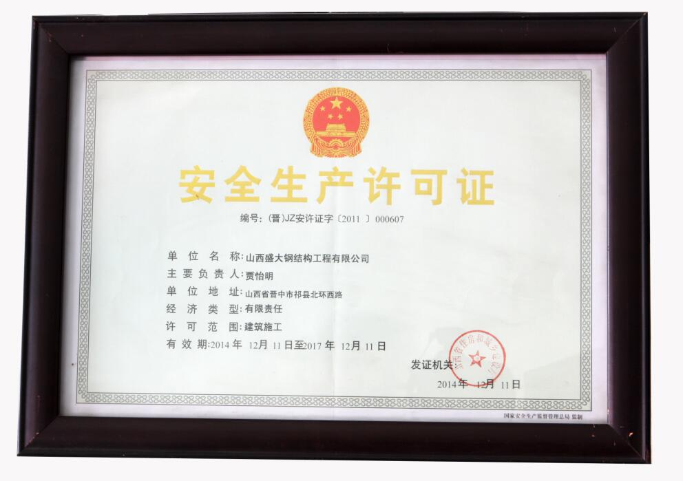 安全生產(chǎn)標(biāo)準(zhǔn)化證書